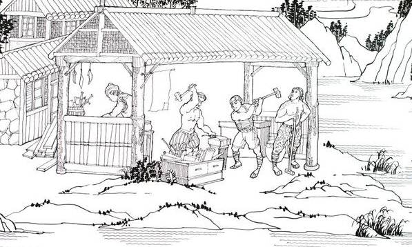 铁匠下锤的时候,有的时候下手轻,有的时候下手重,击打的位置也不是什么标准模式,不过是随心而动。