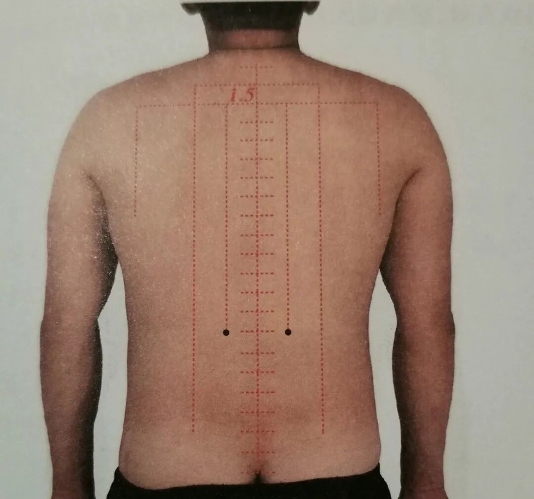 取穴:当第+四脊椎下旁开一寸五分处是穴。