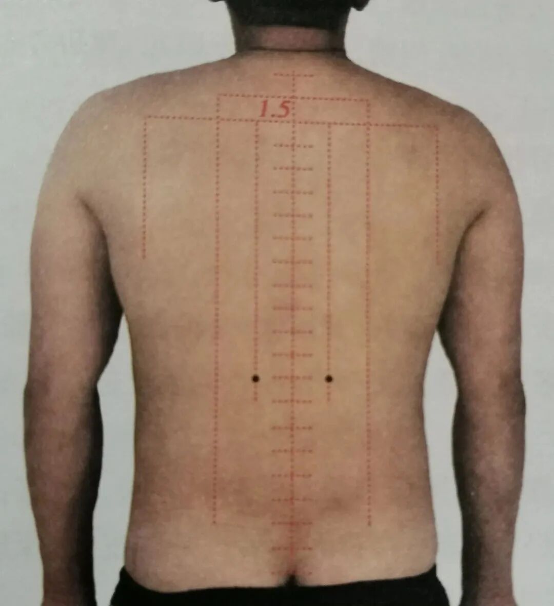 说明:水中穴位置与膀胱经之三焦俞位置相符。